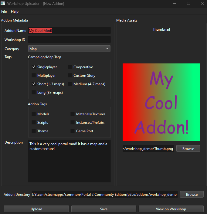 Congratulations! You have now successfully uploaded your addon to the Portal 2: Community Edition workshop!